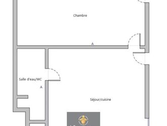 - Au rez-de-chaussée : d'un T2 d'environ 43 m2(loué actuellement) avec un bail signé le 01/04/2018 pour 400€ hors charges. Il est composé comme suit :