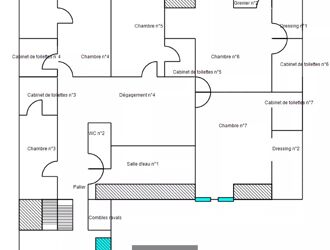 Le bien dispose entre autres, de plusieurs chambres au rez-de-chaussée, d’un grand salon avec de très beaux volumes, d’une cuisine séparée, d’une salle à manger, de dressings, de salles de douche et salles de bains, et de greniers aménageables.